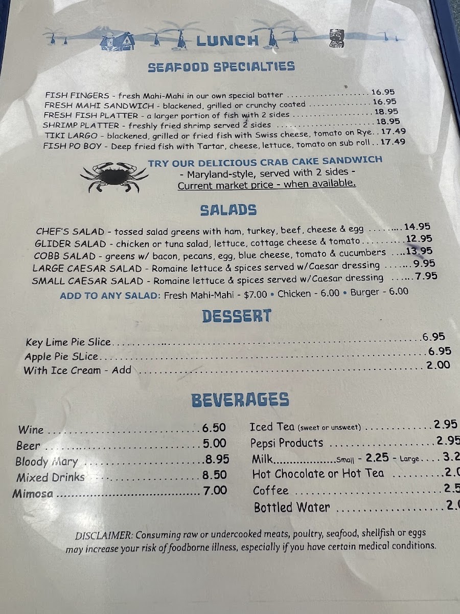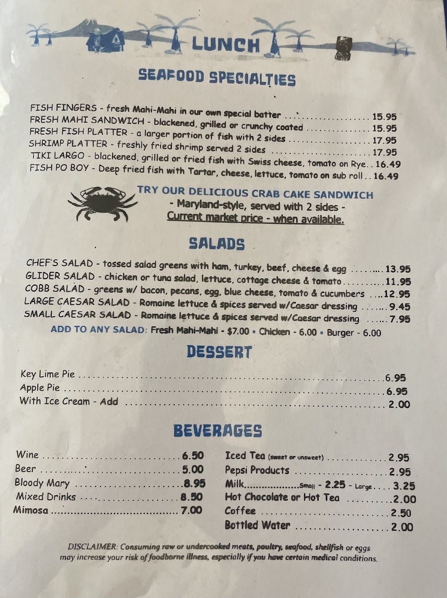 - Salads: Delight in fresh choices like the Tuna Salad Glider, served on a bed of lettuce with a side of coleslaw, cottage cheese, and tomato for just $13.75, or indulge in the chef's specialty, the Chef's Salad, bursting with ham, turkey, beef, cheese strips, and eggs for $16.45.